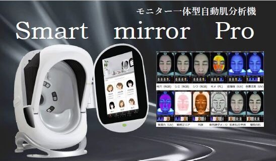 「Smart Mirror Proスマートミラープロ」は、撮影・解析・表示の3機能を一体化した最先端肌測定機である。