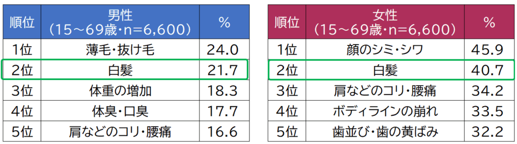 1. 白髪は男女共通の大きな美容悩み