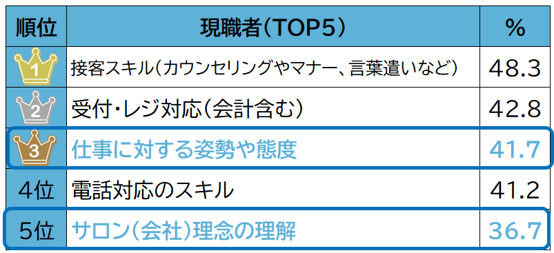 新人研修はどのサロンでも行われていますが、調査からは「教えている内容」と「新人が知りたかった内容」にはズレがあることがわかります。